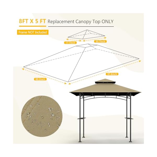 【Size Specification】The 5’x8′ grill gazebo replacement canopy ONLY fit for Model L-GG001PST-F. DO NOT fit for any other gazebo models. Pls check carefully if it fits your frame before you place the order.