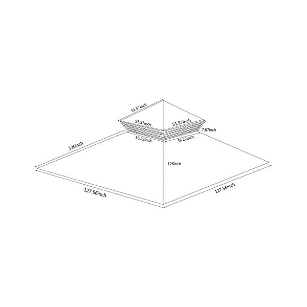 【SIZE】: Confirm that your top tier measures 52″ x 52″ prior to purchasing. If your top tier measures 36″ x 36″, you do not have the Madaga gazebo, you have the Summer Veranda gazebo instead.