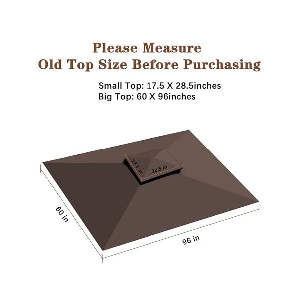 ✅Measurements are: Small Top: 28.5″ x 17.5″.; Big Top: 96″ x 60″ .Replacement Canopy Only. Metal Structure NOT included. You must measure your top and bottom frame dimensions before buying.