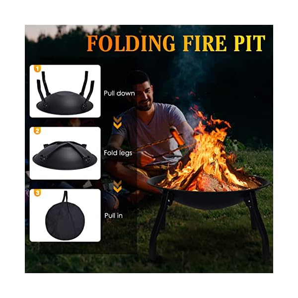🔥 [Versatile] 22 inch outdoor folding fire pit can be used for backyard bonfires, gardens, camping, picnics, parties, all seasons; It can also be used as a gift to your family and friends to provide them with better service and products.