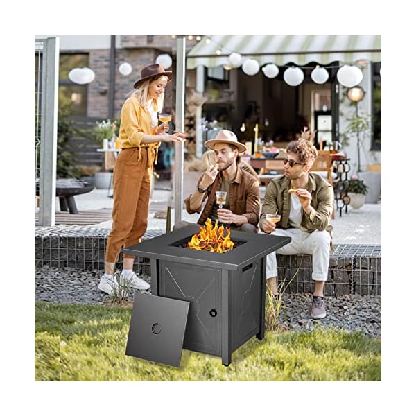 【Suitable Size & Heat Output】:The size of the gas fire pit table is 27.95*27.95*24.41inches, net weight 48.5 lbs, which compliments any outdoor space like backyard, courtyard and terrace of most family. Xbeauty fire pit table 40,000 BTU heat output with flame. You just need to turn the knob, and the fire pit can provide you with enough heat to keep you warm in the cool morning and night.