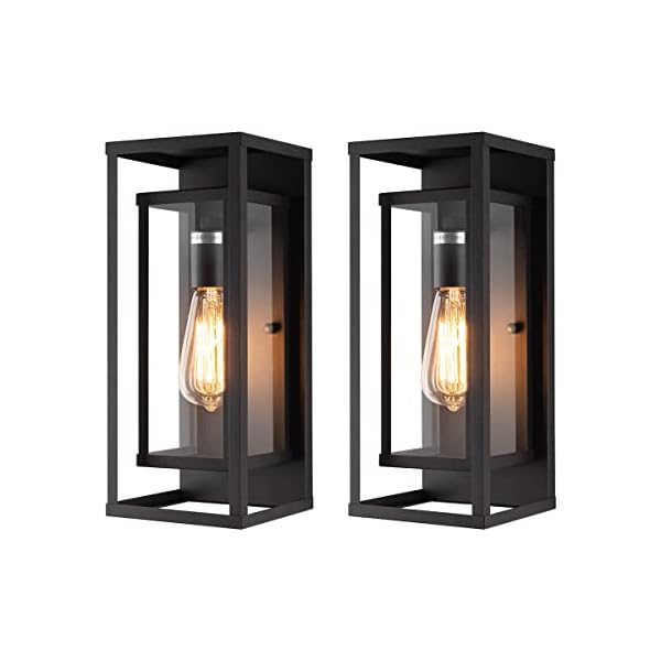 mirrea 14″ Classic Outdoor Wall Sconce 1 Light in Matte Black Rectangular Metal Frame and Clear Glass Shade Waterproof Porch Light Patio Light Pack of 2