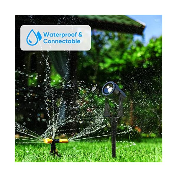 【Connectable & Adjustable】Waterproof twist connector for quick and easy connection with single low voltage landscape spotlight, which does no harm to passersby or pets such as dogs. 270 degree adjustable head let you focus light wherever you need it to, such as walls, trees, flags, flower bed etc