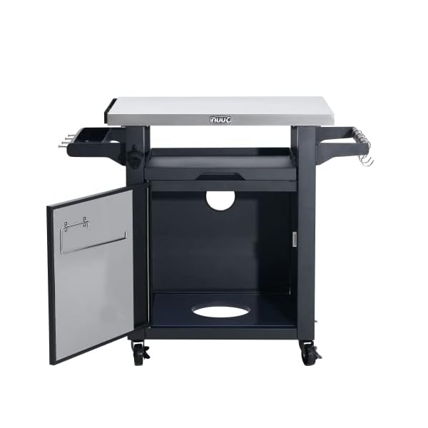 AMPLE SPACE: The stainless-steel tabletop is 20IN x 30IN, total 600 sq inches work area, can be used as grilling prep station, pizza oven table, cooking table, or bar cart. Side condiment rack can hold all your cooking seasoning and sauces
