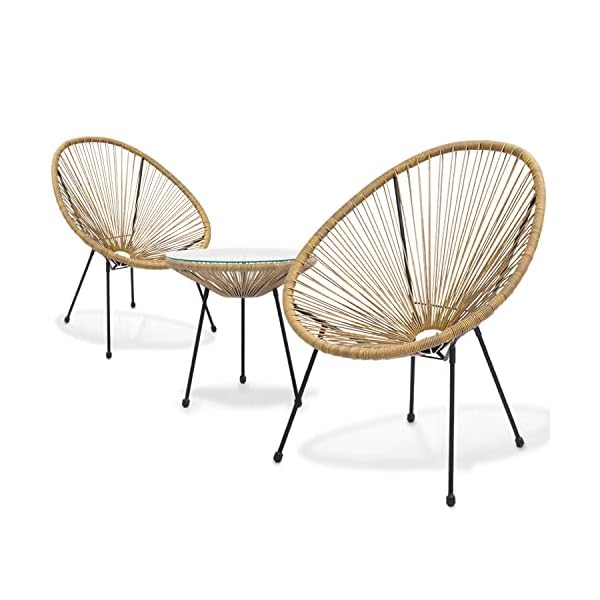 Comfortable Design – The oval acapulco styled chairs have high-back design woven with flexible PE rattan ropes that you can sink into for optimal comfort.
