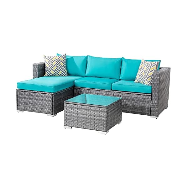 Shintenchi provides high level of patio furniture sets both in terms of quality. The PE Wicker rattan is stronger and the cushion thicker. This 3-piece outdoor sectional sofa sectional set fits up to 3-4 adults comfortably and adds the perfect experience in any outdoor space.