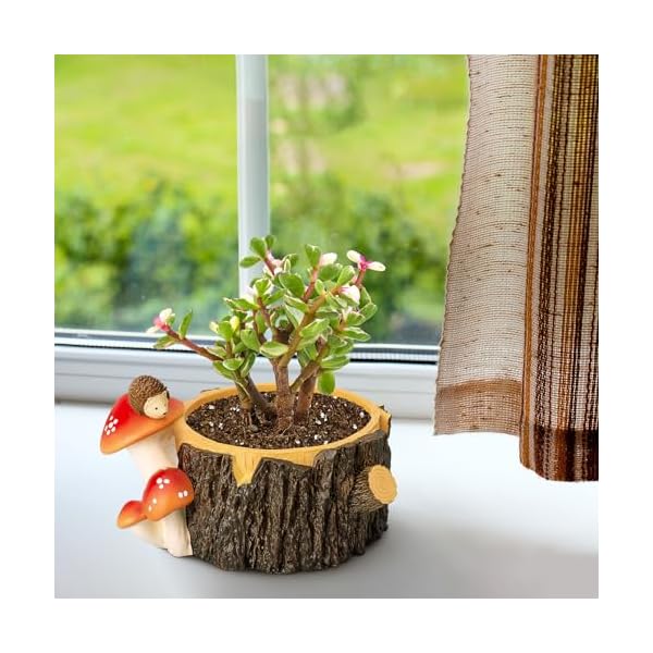 🦔Unique Animal Plant Pots – The flower pots for indoor plants features a realistic tree stump shape, paired with three cute mushrooms and a lifelike hedgehog. This small pots for plants is Crafted by professional craftsmen handmade and made of sturdy resin material, it is very durable.