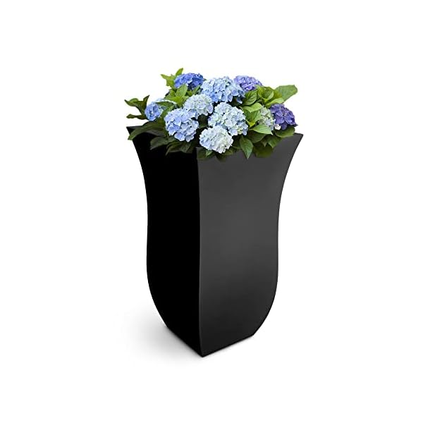 Mayne Valencia 30in Tall Planter – Black – 16in L x 16in W x 30in H – with Removable Plug, Made with Polyethylene (5874-B)