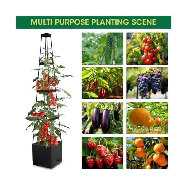 🍅STURDY TRELLIS SUPPORT: this raised bed planter is constructed of a 5 Gal capacity planter box with a 48″ trellis on top which offers great support and ample space to grow a variety of your favorite vine flowers or climbing vegetables ,tomato planter requires no screws and special tools, also no need to read complicated assembly instructions, very easy to assemble and set up. Meanwhile tomato planter can be interconnected and extended to meet your various DIY requirements