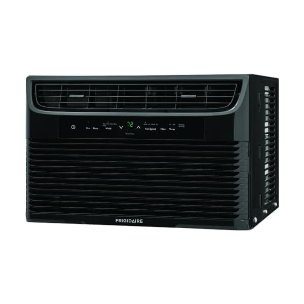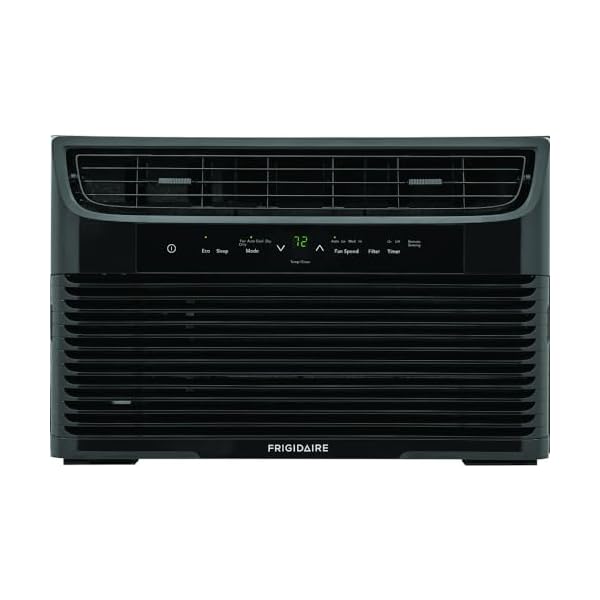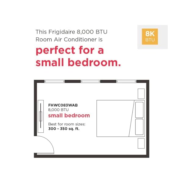 The Frigidaire 8,000 BTU window air conditioner allows you to enjoy optimum circulation and cooling with 6-way directional airflow and three different fan speeds. Designed for rooms up to 350 square feet, this unit is perfect for apartments, offices, bedrooms, or any medium sized space. Use the 24-hour programmable timer to preset the unit to turn on and off in half hour increments, or whenever you want, so that you can maintain optimal comfort while at home. Enjoy maximum comfort and quiet operation throughout the evening hours with sleep mode, where the temperature gradually increases a few degrees over the course of the evening. Our easy-to-clean washable dust filter captures dust from the air and helps keep your air conditioner working efficiently, and you’ll know when it’s time to clean with the Clean Filter Alert. Precisely control the temperature and fan speed from across the room and remain comfortable at all times with your air conditioner’s remote control. These convenient features combine to give you a dependable air conditioner that will keep your home cool and comfortable for many seasons.