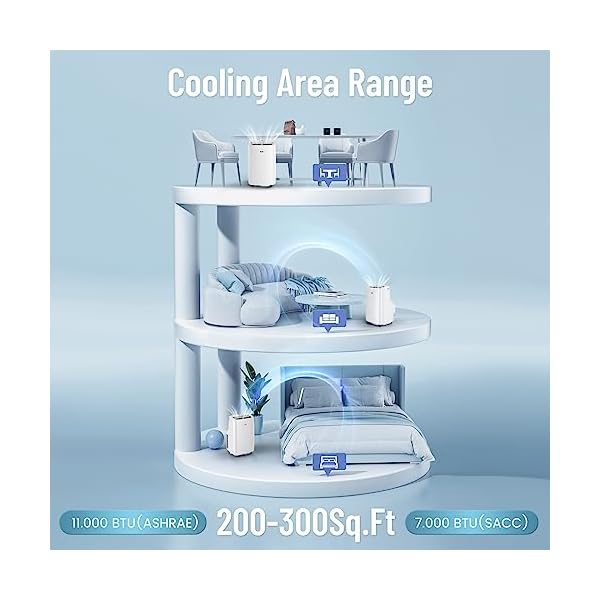 Portable Air Conditioners, 11000 BTU(ASHRAE) /7000 BTU (SACC), Powerful AC Unit with Remote Controller,Cooling, Built-in Dehumidifier,Fan Modes,Reusable Filter,up to 300 Sq.Ft,New 2023 Model