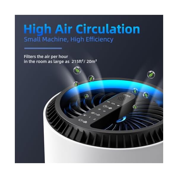 High Circulation Rate: With dual-channel and 360-degree air inlets technology, AROEVE air purifier refreshes the air per hour in rooms up to 215 ft² / 20 m², covering every corner of the room to promote better health for you.