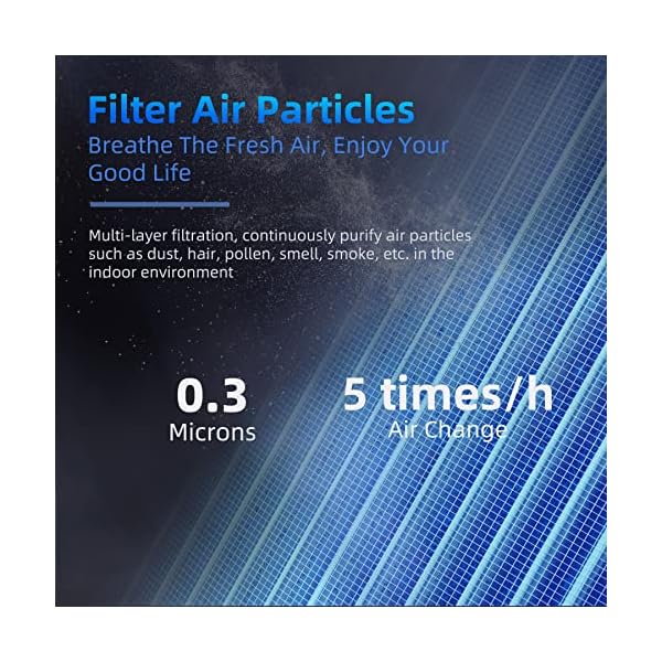 Efficient Particle Filtration: AROEVE air purifier utilizes a HEPA filter that can effectively filter out particles such as smoke, pollen, dander, hair, and more, potentially improving air quality and promoting better health and well-being for you.