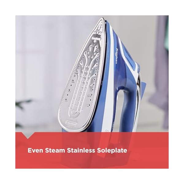 EvenSteam Stainless Soleplate – Even steam distribution from tip to heel helps tame wrinkles anywhere on garments.