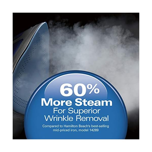10x more durable than traditional non-stick. Superior wrinkle removal. 60% more steam* – for superior wrinkle removal. 3-way auto shutoff. Anti-drip. Vertical steam. Self clean. Retractable cord. 10 year limited soleplate * Compared to Hamilton Beach’s best-selling mid-priced iron, model 14289