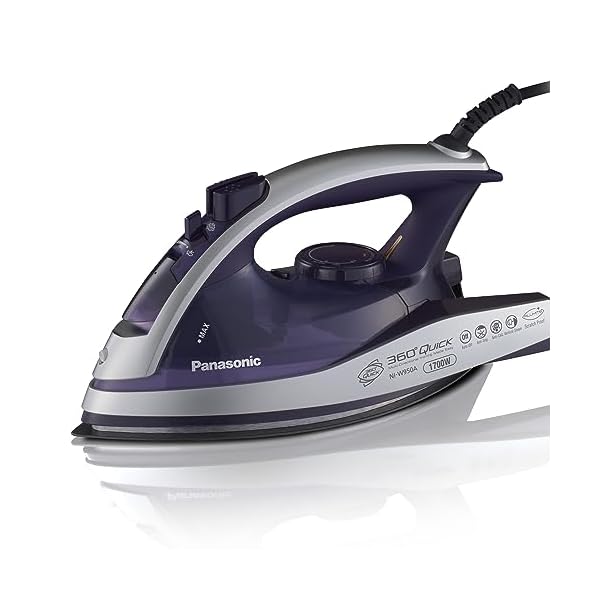 This sleek, multi-directional iron delivers 1700-Watts of power and 360° steam to glide through everyday ironing with a sleek, ergonomic design and non-stick, double-tipped soleplate. A five-setting heat control dial provides the ideal temperatures for different fabrics, and four adjustable steam settings make short work of wrinkles and creases. The large, ultra-smooth anodized aluminum soleplate is an excellent heat conductor for faster heating, and highly scratch resistant for years of easier ironing. Plus, its unique elliptical surface slides effortlessly in any direction on any fabric to help reduce ironing time. Iron quickly and evenly with a five-setting temperature control dial designed to monitor and maintain the precise temperature you choose for different fabrics. A bright indicator light illuminates when the proper temperature is reached. With a smart arrangement of steam vents around the soleplate’s edges, the iron applies more steam over a wider ironing area for more efficiency in less time. Set to HIGH for heavier and everyday fabrics, LOW for more delicate fabrics and quick, easy touch-ups or choose DRY for ironing when no steam is needed. Automatically keep your iron’s steam vents clean, clear and steaming like new with a built-in anti-calcium cleaning system to reduce natural sediment build-up in the iron’s vaporizing chamber. With the one-touch Jet-of-Steam feature, a powerful burst of steam through the soleplate quickly penetrates clothing, sheets and more to help you tackle tough wrinkles and creases. With the push of a button, the iron’s vertical steam feature directs a full burst of steam to relax and remove winkles in hanging garments, curtains, drapes and more. For safety, a smart sensor automatically deactivates the iron when it’s left standing in the upright position for 10 minutes, after 60 seconds if the iron is left unattended on its soleplate or if tipped over on its side.