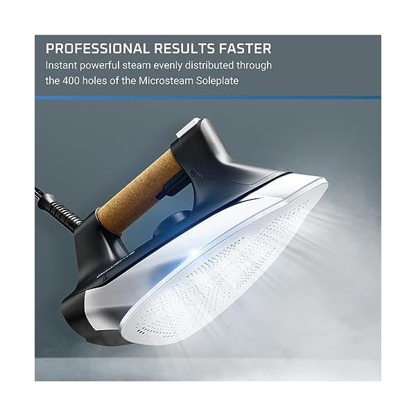 Professional results faster: Cut your ironing time by half with the high-pressure steam, deeply penetrating the fabrics. Precisely and evenly distributed through the 400 holes of the Microsteam Soleplate, it efficiently removes tough unwanted creases