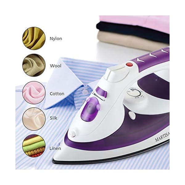 【NONSTICK SOLEPLATE IRON】 : Smoothly glides over all clothes/fabrics like nylon, silk, wool,cotton, linen ect., 8.5ft swivel cord guard rotates 360 degrees, making it easy to iron with trangle-free.