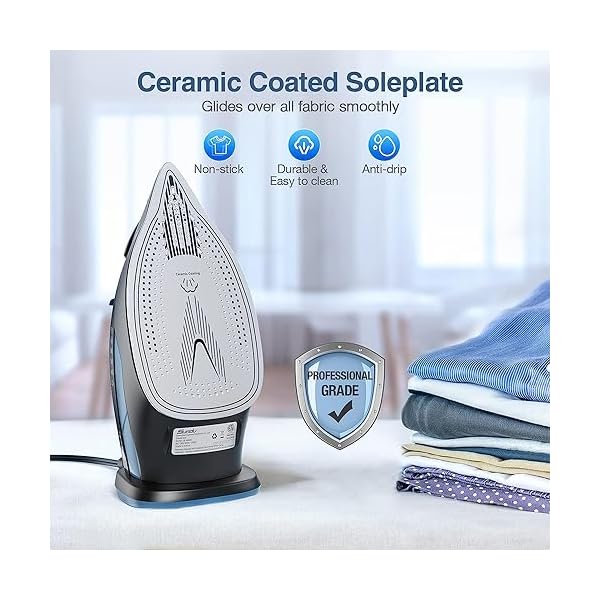 Ceramic Coated Soleplate: This Sundu 1700W steam iron for clothes offers superior wrinkle removal from even the most stubborn of fabrics. The ceramic coated soleplate can fast even heat and easily glide across various garments and smooth hard-to-reach areas. Super scratch resistant, and more durable and easier to clean.