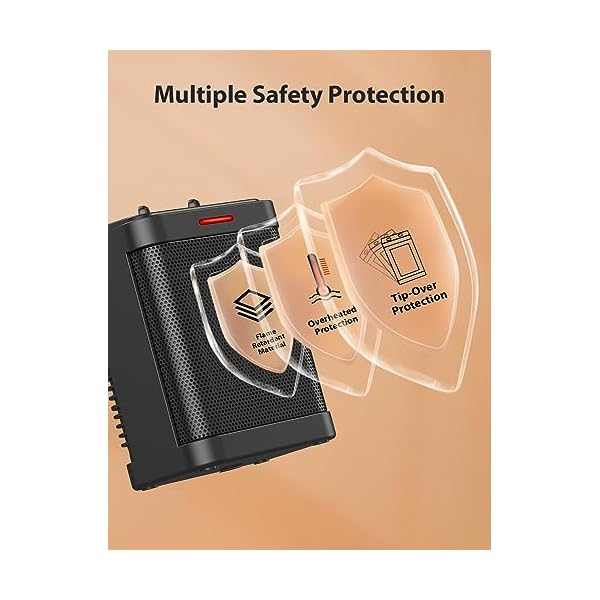 【Extensive Safety Features】: Our electric ceramic heaters feature a built-in tip-over switch and overheat protection for extra safety is provided, and will not endanger children and pets. If the electric heater accidentally overheats, it will automatically shut off. Also has a tipping function that turns off if it’s knocked over.