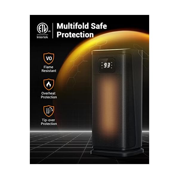 Warmth You Can Trust: Your Safety Remains Our Primary Focus. Our ETL-certified electric portable heater is equipped with overheating and tip-over protection, child lock function, 24-hour timer, and V0-rated flame-retardant materials minimize risks and ensure the safety of you and your loved ones. What’s more reassuring is that you can even choose the continuous work setting and maintain its functionality 24/7. Say goodbye to the cold time and enjoy a warm, quiet, and comfortable home!