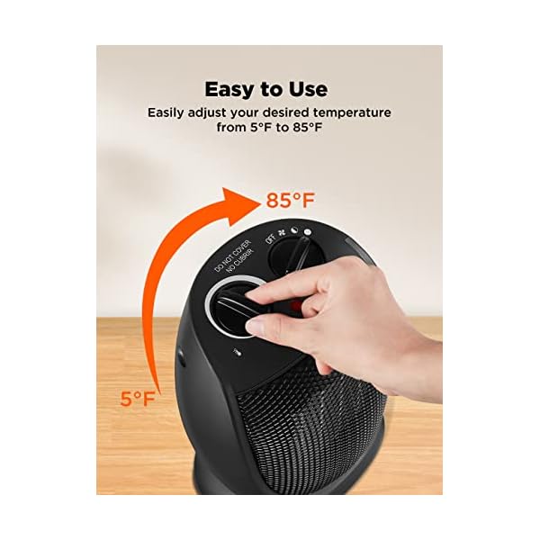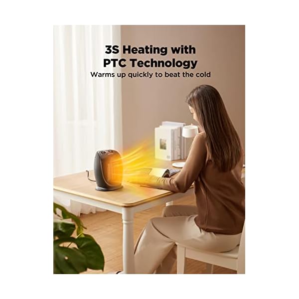 Fast Heating: Relying on PTC ceramic heating tech, high-speed fan element and rated power up to 1500W, heat up 200ft² in 3 seconds. Adjustable thermostat equipped for optimal heating temperature and energy saving.