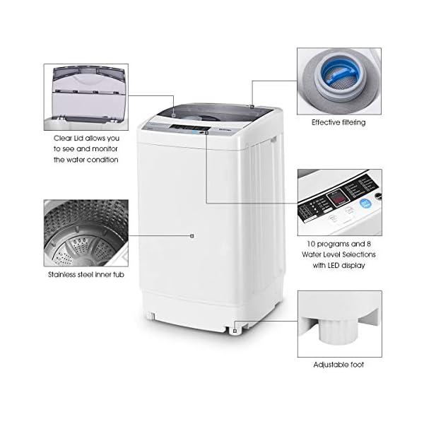 〖Easy and Safe to Operate & Monitor〗- With detailed and specific manual, it is easy and convenient for you to operate it and inlet or drain water. Clear and transparent lid allows you to see and monitor the water and washing condition. Once child lock function is set, all buttons are locked and the machine stops running and error alarms if the top lid is opened.