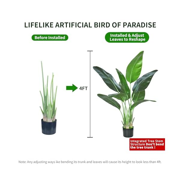 【Gorgeous Artificial Plant】Artificial plants fake tree are all selected from nature.this bird of paradise artificial plant have real touch leaves,please insert the branch and then gently bend the leaves to make them full,you will get a lifelike tree,let you feeling romance and beauty of nature without leaving home.