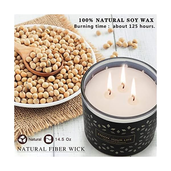 【Natural Soy Wax】Our scented candles are made from 100% natural soy wax and 8% lavender essential oil. Soy candles are a great option for those looking for a more natural option. Soy candles are made from renewable resources and burn cleaner than traditional paraffin candles, making them environmentally friendly and healthier.
