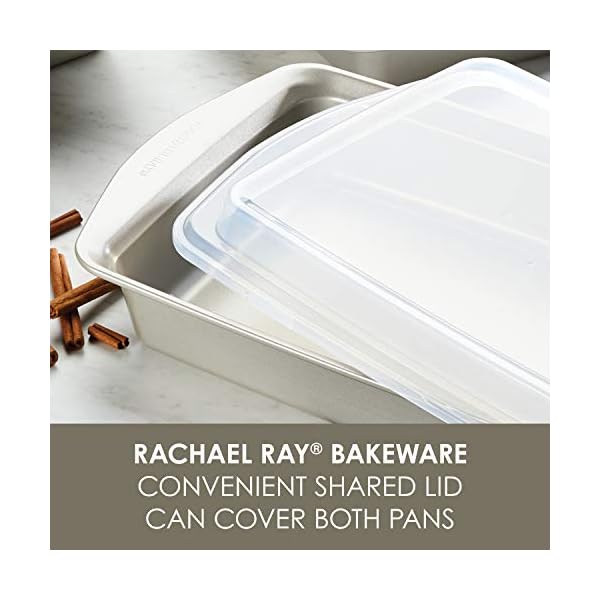 DURABLE BAKE PANS: This Rachael Ray bakeware set features heavy gauge steel construction with rolled-rim edges, and is designed for easy, everyday use
