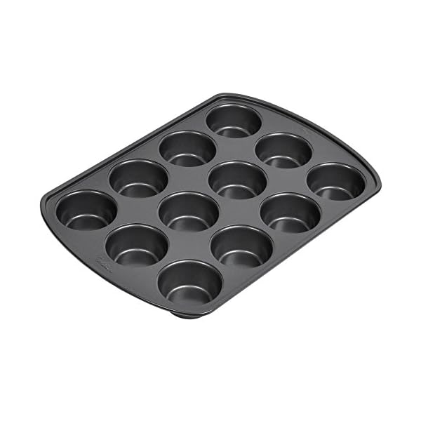 Everyone loves a good, warm muffin in the morning, and it’s never been easier than with this 12-cup non-stick muffin pan. So get up and get going. This pan can also be used to make a dozen cupcakes to brighten someone’s day. This product contains: Steel (Iron, Aluminum, Zinc, Manganese, Phosphorus). For more information about the chemicals in this product, visit/Para más informacíon sobre los químicos en este producto visite Wilton.com/california-ab-1200.