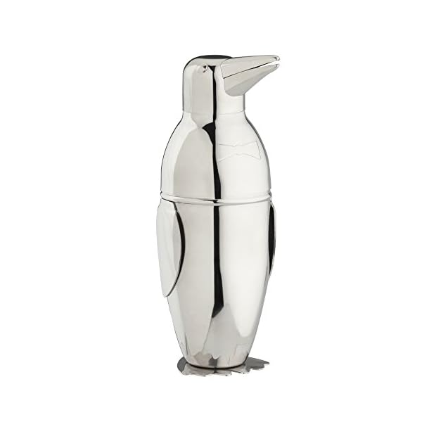 HIC’s penguin cocktail shaker is elegant, fun and functional, and nicely complements other bar accessories. This whimsical fellow, with decorative beak and webbed feet, makes a great conversation piece when entertaining. It’s the perfect shaker for mixing martinis and other favorite cocktail drinks. Shakes up 18-ounce cocktails quickly and strains while pouring. Simply measure ingredients into the footed base, firmly place the shaker top and ‘head’ cap on, then shake to mix and chill your drink. Lift off the penguin’s ‘head’ cap to strain and pour your drinks. Design inspired in the art-deco style of the 1930s Napier original. Makes a great hostess gift for the causal mixologist or cocktail connoisseur. Made from high-polish, 18/8 stainless steel with an 18-ounce capacity. Hand wash in warm, soapy water. Rinse and dry thoroughly.