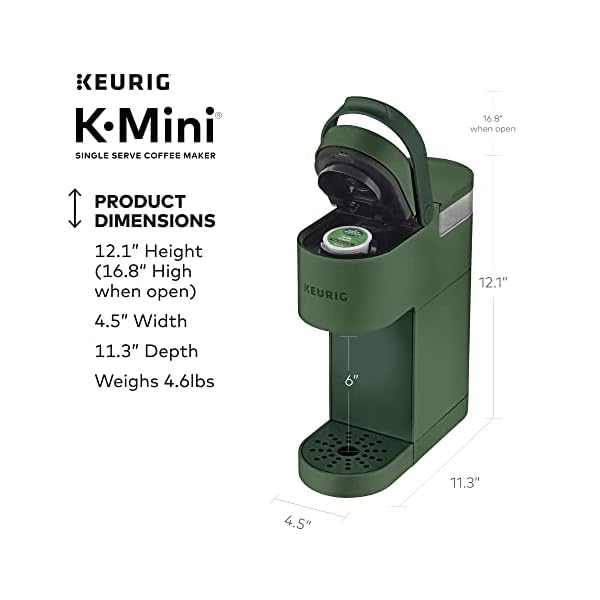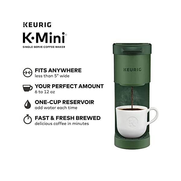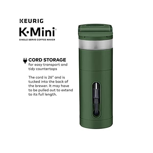 The Keurig K-Mini single serve coffee maker in Evergreen features a sleek design with matte finish, and at less than 5 inches wide is the perfect size for any space or occasion. The K-Mini brewer is effortlessly simple to use, just add fresh water to the reservoir, pop in your favorite K-Cup pod, press the brew button and enjoy fresh brewed, delicious coffee in minutes. Choose from hundreds of delicious K-Cup pod varieties to enjoy 6-12oz of your favorite coffee, tea, cocoa, and iced beverages. With a single cup reservoir and cord storage, the K-Mini coffee maker is the portable brewer that makes anywhere perfect for great coffee. The K-Mini coffee maker is available in a variety of matte-finish colors. Based on consumer feedback, we have updated the K-Mini Brewer. Customer reviews have been removed that relate to the previous version of the brewer.