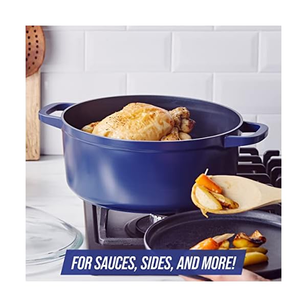 Everything you love about Dutch ovens without the hassle. The Big Batch is 50% lighter than traditional cast iron and, thanks to Blue Diamond’s signature nonstick coating, it wipes clean and is dishwasher safe for tough messes.