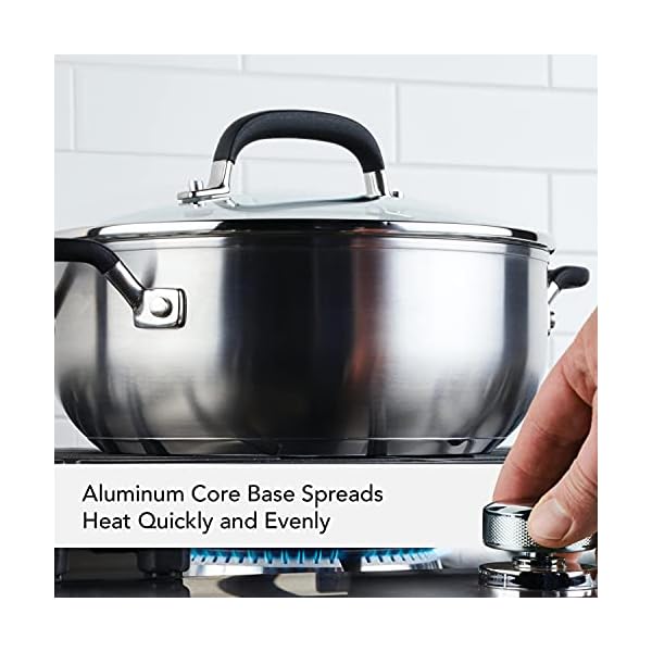 QUICK, EVEN HEATING: KitchenAid 4-quart casserole has been crafted from stainless steel with an aluminum core base to spread heat quickly and evenly