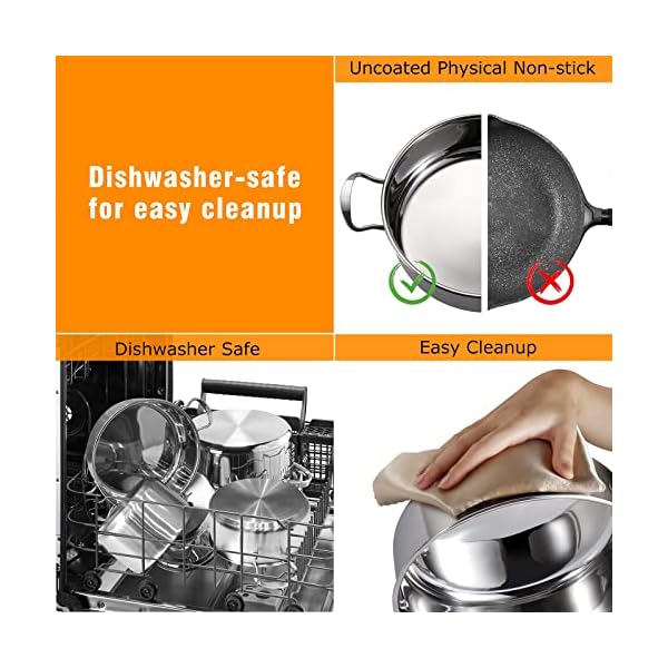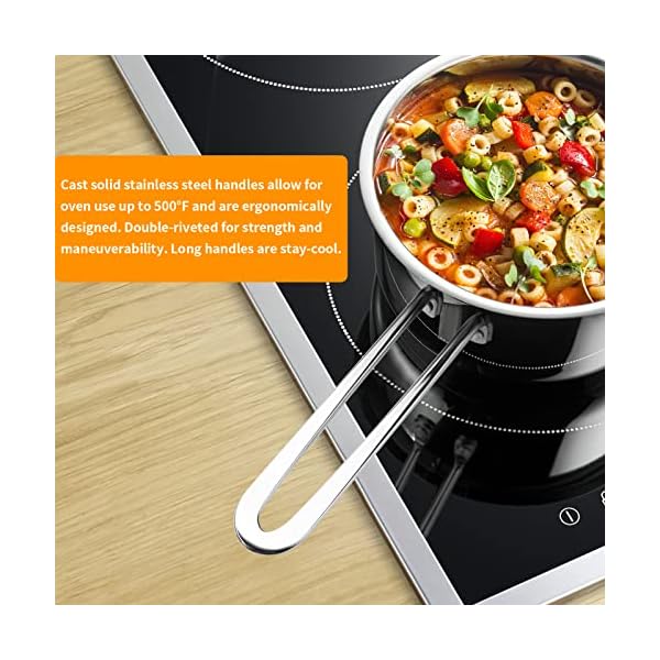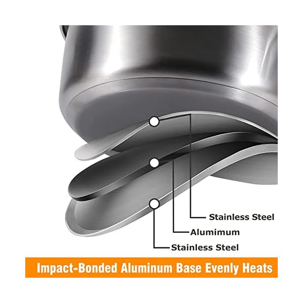 【High-Quality Materials】Drip-free pouring tri-ply construction. The first and third layer is stainless steel for sturdy nonstick pots features. The aluminum in between conducts consistent even heat distribution