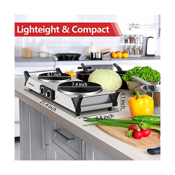 🍳 1800W DUAL BURNERS & EASY TO CONTROL – Techwood electric stove heats efficiently with 2 thermostatically controlled heat settings conveniently to cook a variety of foods such as warm sauces, scrambled eggs, grilled cheese, soup, pasta, vegetables and so much more. Also you can use it as extra burner to keep food warm.