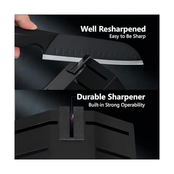 Top Quality Knife Set: This knife block set is made of premium high carbon stainless steel ensuring the quality of knife better, its performance exceeds other brands’ products and ISO standards.