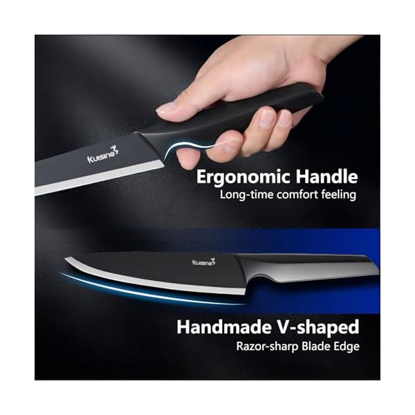 Exquisite Design Handle: This knife set is patented with the ergonomic and comfortable handle, which is made of high quality high carbon stainless steel and give you a solid hold feeling.