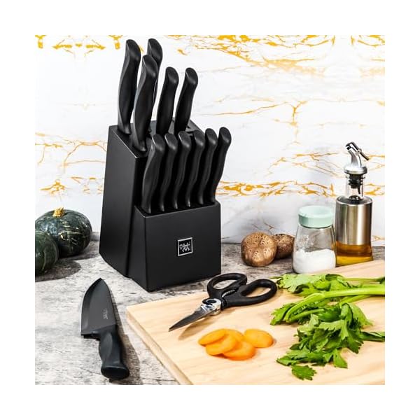 CRAFTSMANSHIP – Non-Stick and Rust Resistant – With a black coating that prevents oxidation of the steel, the kitchen knife set will last a long time and remain non-stick and rust resistant. The ergonomically designed handle provides a comfortable grip and the handle will no longer loosen or fall off.