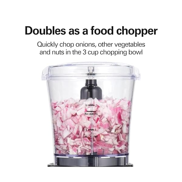2 in 1 Versatility. Save space in the kitchen with this one multifunctional appliance that works as both a blender and food chopper. It includes a 40 oz. glass blender jar and a 3 cup food chopper, both with durable stainless steel blades.