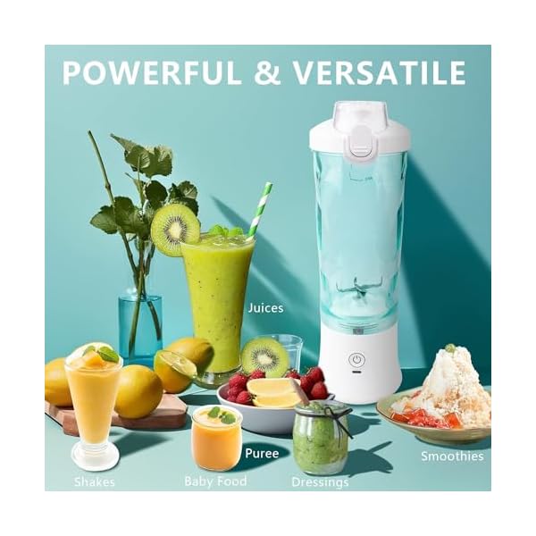 Portable Blender, Smoothie Maker Blender with 6 Ultra-sharp Blades, Personal Blender for Shakes and Smoothies Baby Food, 20 Oz Mini Blender with Travel Lid & Cleaning Brush for Home Travel Work(600ML)