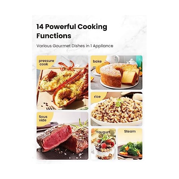 9 IN 1 MULTI PRESSURE COOKER: Work as pressure cooker, rice cooker, steamer, yogurt maker, slow cooker, Sauté, Sous Vide, food warmer and cake maker