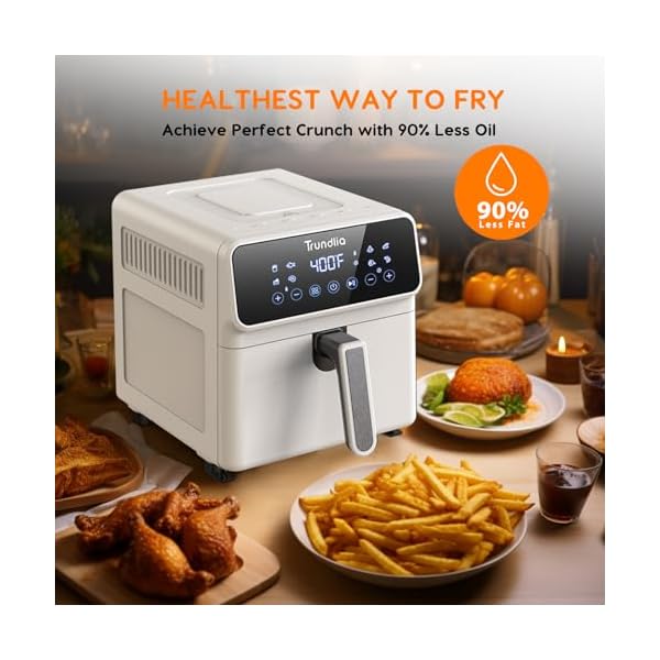 ✨ Experience Revolutionary Cooking with the Trundila Air Fryer: Featuring a premium Full-Metal exterior, crafted from high-quality materials, our air fryer combines elegance with safety. Say goodbye to concerns about melting or fire hazards, and embrace a cooking journey where style seamlessly meets durability.