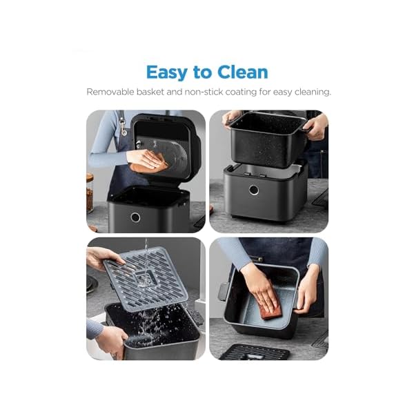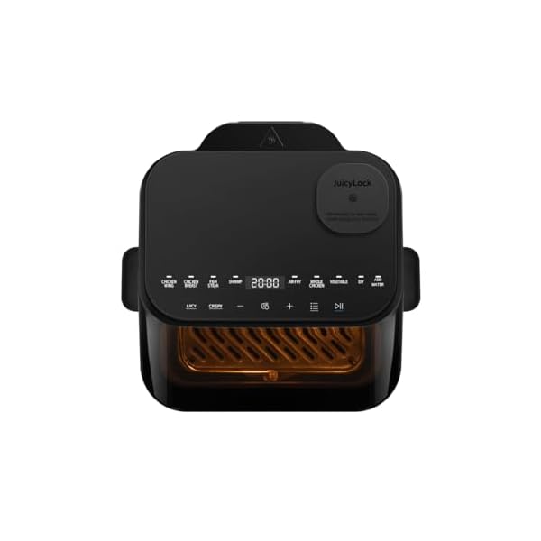 JuicyLock Technology: With built-in moist spray generator, it creates moisture in the air fryer while 360° hot air technology ensures uniform heating so your food cooks evenly. You will enjoy juicy, tender, tasty foods with less oil.