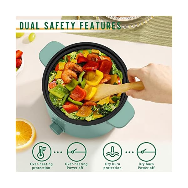 【Fast Heating & Higher Safety】 With an upgraded full heating plate, this hot pot electric keeps your food heated more evenly and lastingly. At the same time, this small rapid noodles cooker is equipped with an over-heating and boil dry protection device, which can effectively protect the electric pot from overheating and continuous boiling during dry-burning, making you can rest assured to use.