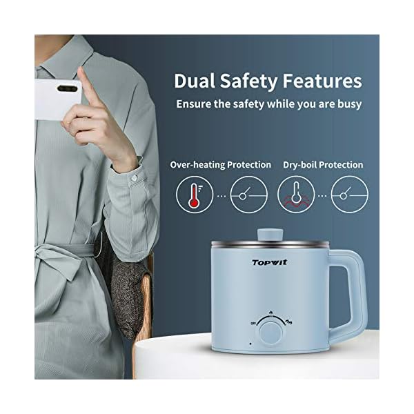 [Dual Safety Features] – Equipped with overheating protection and boil dry protection technology, the ramen cooker will shut itself off when the temperature is over the selected value or there’s no water inside.