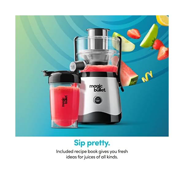 Compact, efficient, tidy, and makes you fresh, delicious juice every day? No, it’s not the world’s greatest roommate, it’s the magic bullet® Mini Juicer. This zippy appliance extracts the good stuff from your favorite fruits and vegetables, maximizing yield while cutting way down on prep, mess, and waste. It’s simple to use, easy to clean, and sized for easy storage, on or off the countertop. Plus, it comes with a convenient 16-oz tumbler that fits right onto the juice spout, letting you juice into and sip from the same portable cup – no extra dishes required.