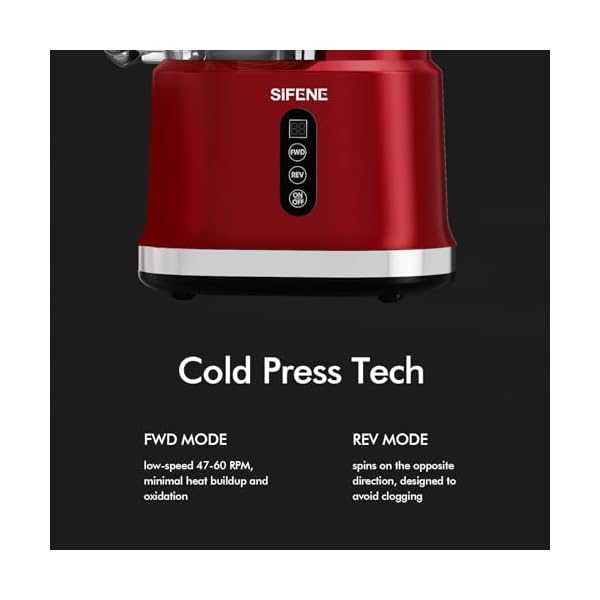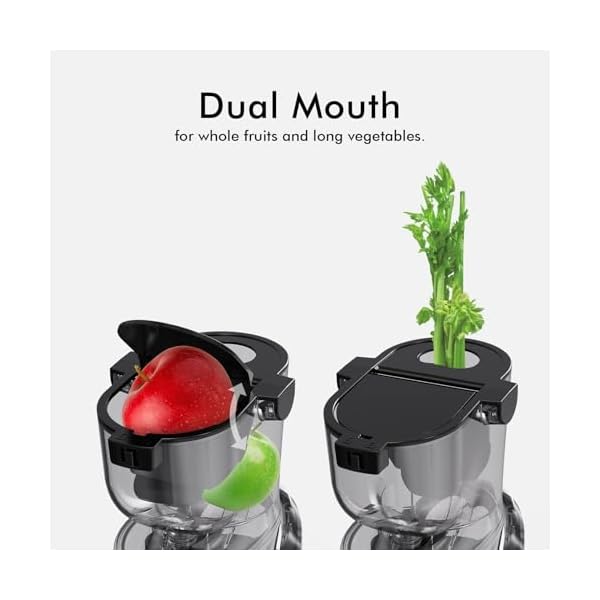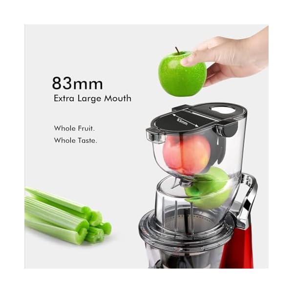【Large Dual Feed Chute】With SIFENE’s vertical cold press juicer, juicing is a breeze. Its 83mm whole fruit chute and 32mm veggie chute let you juice without chopping first. Save time and enjoy more juice from your produce.