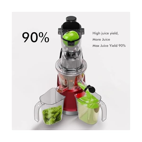 【High Nutrition】Our slow juicer significantly increases juice yield by 90%. Designed to extract every drop from fruits and vegetables, it gives you more juice with less waste – a practical and cost-saving choice.